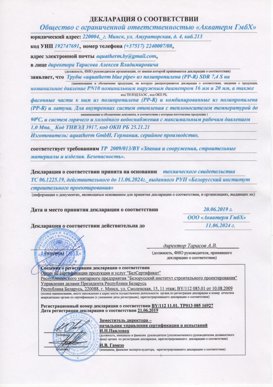 - Наша компания официальный представитель завода aquatherm на территории РБ.